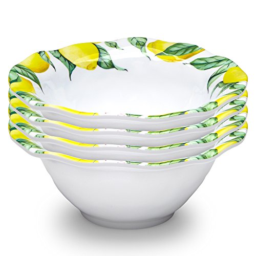 Q Squared Limonata BPA-Free Melamine Cereal Bowl, 6-1/2-Inches, Set of 4, White, Yellow, Green