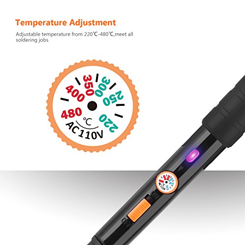 - ▲STRONGE POWER & HEAT DISSPATION - 60 watts, heat up quickly . Adjustable temperature with thermostat range 220 ~ 480℃ to meet all soldering work; with upgrade steel-pipe design(4 heat dissipation holes on the tips), the soldering iron is more efficient in a better heat dissipation to last it a long using life