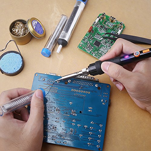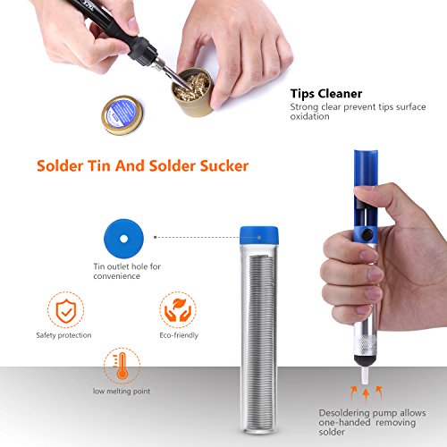 - ▲ 11-in-1 FULL KIT - the soldering iron kit comes with soldering iron, 15g solder wire,Solder sucker, stand with cleaning sponge, 5 X 900M multiple soldering tips, anti-static tweezers, a boxed copper scrubber and a carry case to meet all your soldering project needs