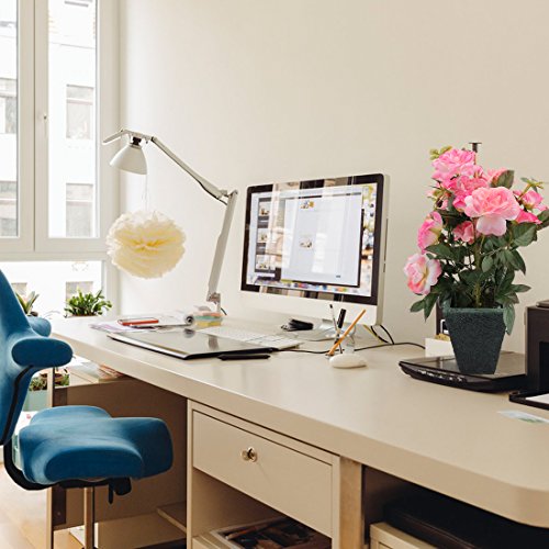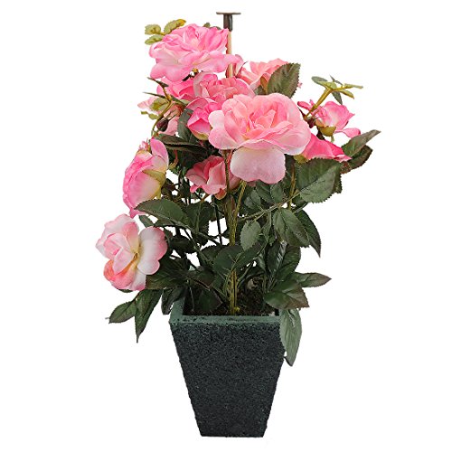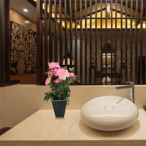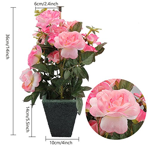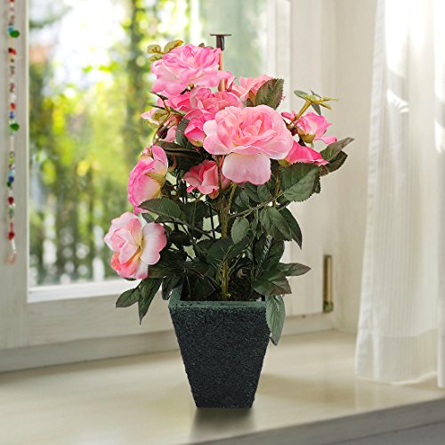 RERXN Artificial Potted Rose Silk Flower with Ceramic Pot for Home Office Restaurant Table Centerpiece Decorative (Pink)