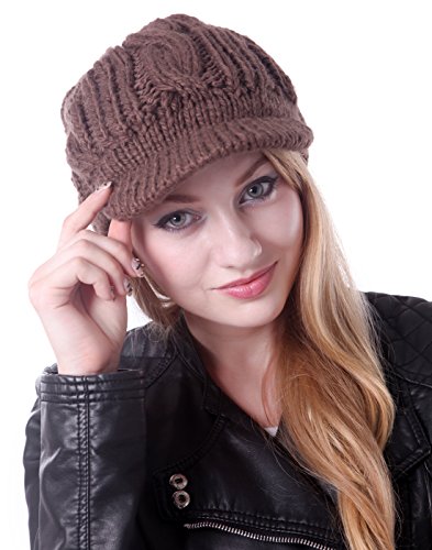 -. Title : HDE Women's Winter Crochet Cable Braided Knit Slouchy Visor Beanie Warm Snow Hat