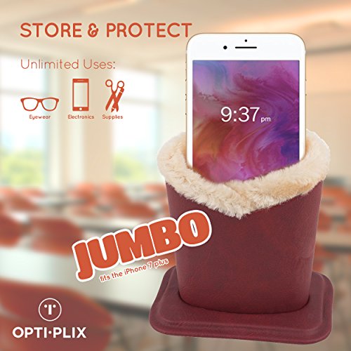 Binding : Eyewear Product Description With OptiPlix's Jumbo Sized Plush Lined Upright Eyeglass Holder you can store eyeglasses and other items securely. Never worry about not being able to find your eyeglasses again. Keep them handy with this convenient eyeglass stand. You can easily set your glasses inside for safekeeping. The upright structured design allows you to keep two or three pairs inside. The interior is plush lined and won't scratch or harm your glasses and the exterior comes in a variety of elegant and chic shades that act as a decorative accessory for any tabletop in your home or office. OptiPlix's Upright Eyeglass Holder Stand offer a great set of features that will make your life much easier and protect one of your most valuable assets in style. About This Product: ? Protects Your Glasses From Scratches Bending ? Fits Almost Every Size Glasses Sunglasses ? Holds Large Items Like Cellphones ? Easily Find Your Eyewear ? 4.5 in. x 3.5 in. x 1.5 in. The upright design makes glasses easily accessible from any flat surface. Our eyeglass holder is a perfect place to store your glasses to prevent them from getting scratched in this soft, lined holder. These holders are also a cute and fashionable choice, available in a variety of fun beautiful colors: - Brown - Black - Green - Maroon - Pink Use them for more than just your eyeglasses! Store pens, pencils, office supplies, small cosmetic items, large items such as cellphones and more. These eyeglass holders make great gifts for men, women and children for all occasions. This amazing product will save you a lot of time by keeping your eyeglasses well within reach so you never have to worry about wasting precious time searching around the house or office for them and the stylish designs will add charm to your home or office space. 0