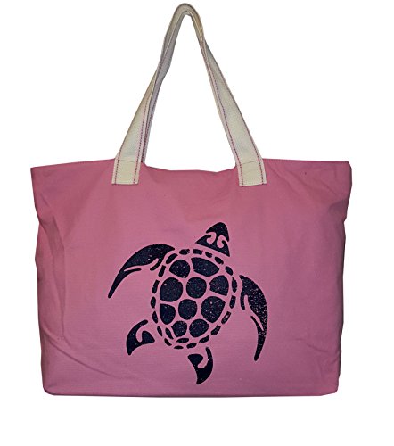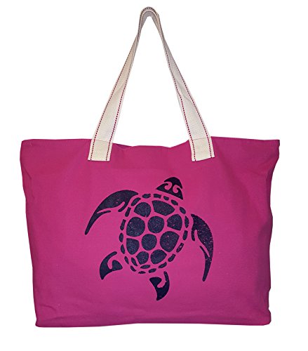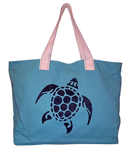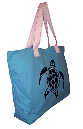101 BEACH - XL Zipper Top Closure Turtle Design Beach Tote Bag