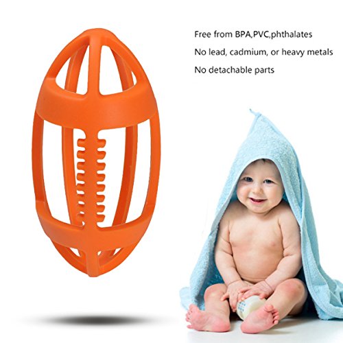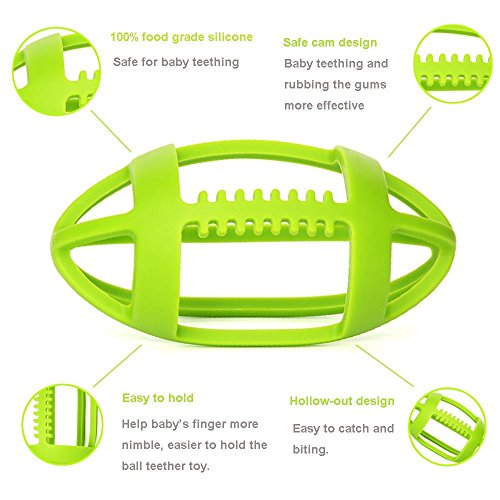 -. Feature : Made of the highest quality natural food-grade silicone.Safe- bpa free, non-toxic, meets standards for fda and ce. / Rugby teether assist baby in building up their mouth muscles and teaching them to suck, and soothe, massage, and reduce fussiness & discomfort.Soothes baby's sore gums. / Multiple soft teething surfaces and textures to chew on. The football can also be bent to create different shapes. / Funny model and hollow-out design, easy to grasp shapes,Supports hand/eye coordination. / It is durable lasting well beyond baby's teething years. They're also a stimulating sensory toy for toddlers.