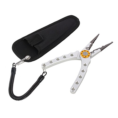 Isafish Fishing Pliers 7 Inch Stainless Steel Multifunctional Line Scissors Cutter with Sheath Lanyard Nose for Split Ring
