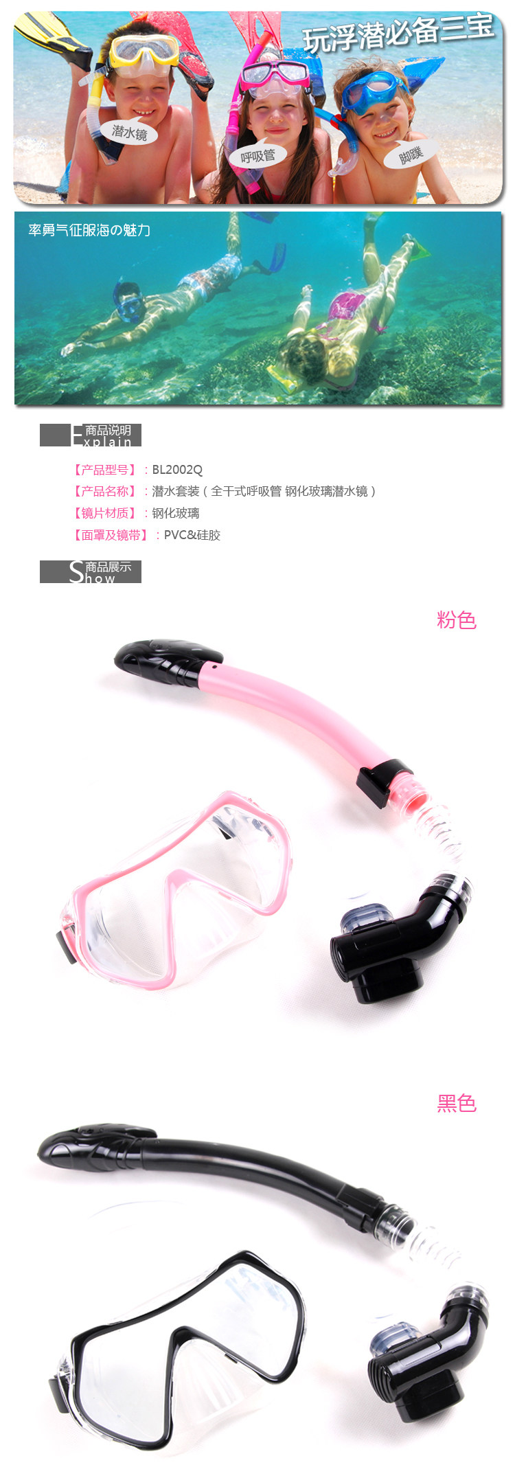 【商品名称】:搏路全干式潜水呼吸管+潜水镜套装