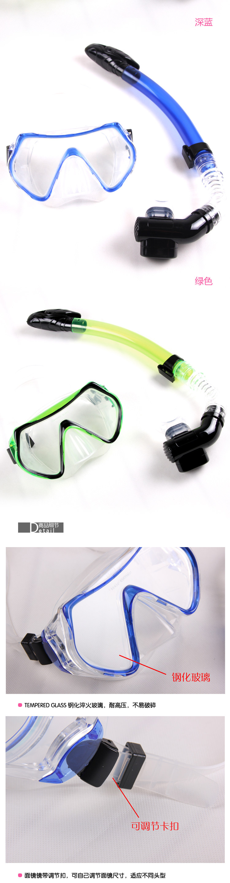 特点 :大视野,低容量,易排水化设计,做工精良。高级进口硅胶、无毒,高抗海水腐蚀,无过敏等。