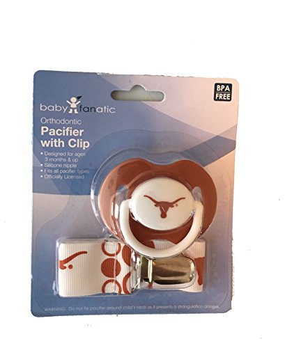 -. Feature : Officially liscensed by the NCAA & Baby Fanatic / Team Color and Graphics / Clip Works with all Pacifier Types / Uni-sex infant: recommended 3+ months / BPA-free pacifier included