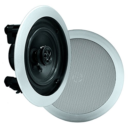 The Pyle PDIC81RDBK two-way in-ceiling speaker system delivers stereo sound to any room in your home or office without cluttering floor space. Each unit in the pair measures 8” in diameter, equipped with a 1” high temperature voice coil and direct able 1/2” polymer dome tweeter for a full, rich sound. These speakers pump out up to 250 watts max and are sold as a pair.Feature