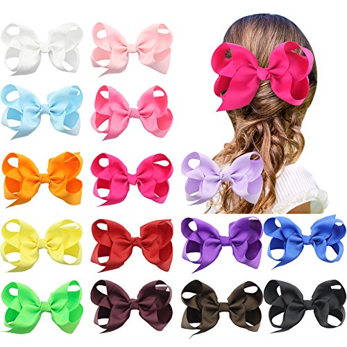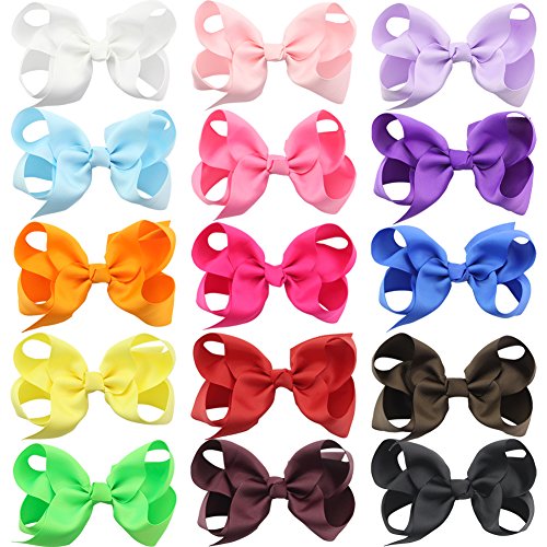QtGirl 15pcs 5.5" Jumbo Boutique Grosgrain Hair Bows Alligator Hair Clips for Girls Kids Hair Accessories