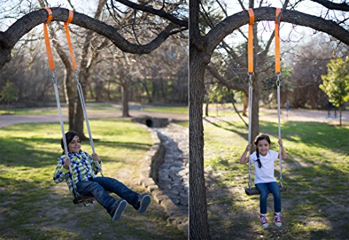 EASY, PORTABLE ADJUSTABLE & SAFE: 2 minute installation for mounting any swing (platform, seat, tire, bench) to tree, patio beam, or overhead structure. Won't damage tree, mounting beam or structure!