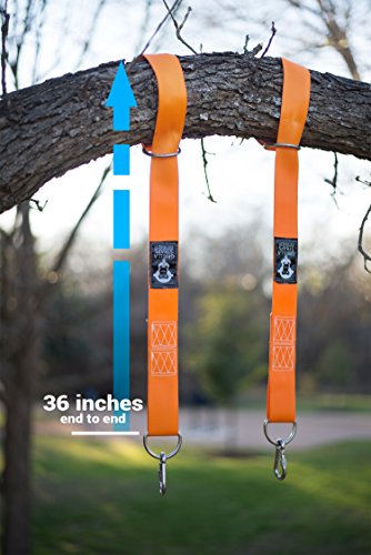 HEAVY GRADE, 800 PLUS pounds per strap or as much as the tree can handle! Set of TWO Heavy Duty Towing-grade Nylon Straps with Stainless Steel D-rings + TWO Heavy Duty 304 Stainless Steel SAFTEY Spin-Lock Carabiner hooks.