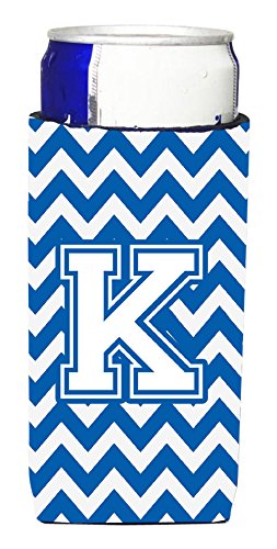Letter K Chevron Blue and White Ultra Beverage Insulators for slim cans CJ1045-KMUK
