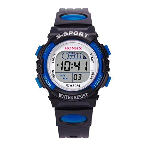 -. Title : Hemlock Childrens Boys Waterproof LED Digital Calendar Watches Silicone Alarm Sports Wrist Watch Blue