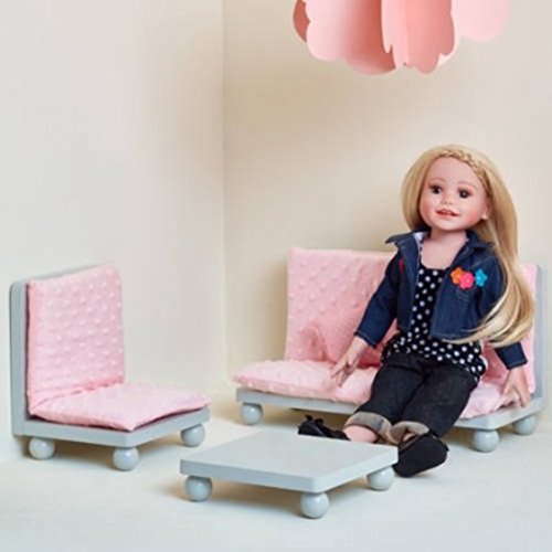 -. Binding : Toy -. Brand : Olivia's Little World -. EAN : 7109764245603 -. Feature : Sofa Dimensions: 14" H x 6.5" W x 8.13"D / Table Dimensions: 7" H x 7" W x 1.88" D / Side Sofa Dimensions:7" H x 6.63" W x 8.25"D / Doll-sized lounge set. Safe, sturdy wooden stucture. Lead free paints. / Includes chair, loveseat, and coffee table. Doll & Dollhouse are not included. Estimated assembly time:15 mins. -. Genre : Entertainment -. IsAdultProduct : 0 -. ItemPartNumber : TD119-30ABG -. Label : Olivia's Little World -. Manufacturer : Olivia's Little World -. MPN : TD119-30ABG -. PartNumber : TD119-30ABG -. ProductGroup : Wireless -. ProductTypeName : TOYS_AND_GAMES -. Publisher : Olivia's Little World -. Studio : Olivia's Little World -. Title : Princess 18" Soft Pink Doll Lounge Set
