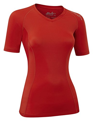 SUB Sports ELITE RX Womens Graduated Compression Top - Short Sleeve Base Layer - Red Stealth - S