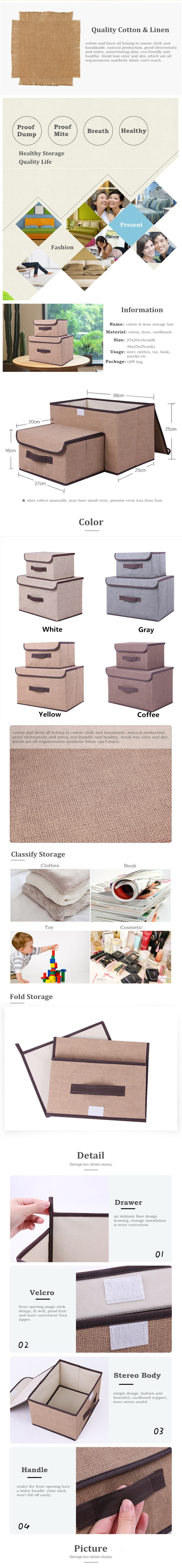2pcs棉花和亚麻储物盒盖帽袜子玩具零食杂货组织者套装