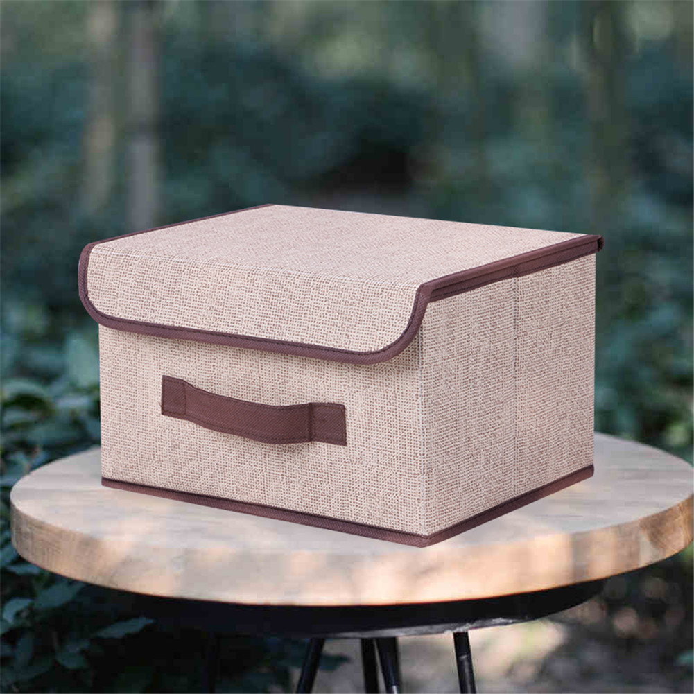 2pcs Cotton And Linen Storage Box With Cap Clothes Socks Toy Snacks Sundries Organizer Box Set