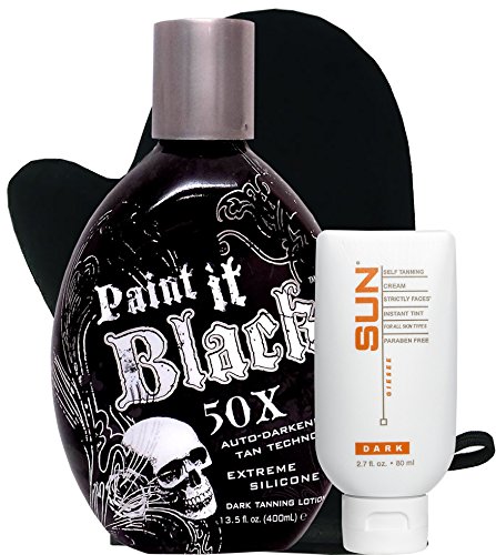 Studio : Sun Laboratories Publisher : Sun Laboratories Binding : Misc. Product Description 1. Millennium Tanning Paint It Black 50X,13.5 oz 1. Sun Laboratories Strictly Faces Dark 2.7oz 1. Sun Laboratories Tanning Mitt Sun Laboratories was established in 1983 and is family owned and operated. It is a company built on the premise of creating a line of beauty products that utilizes an easy application process as well as resulting in glowing skin, free of harmful rays from the sun. 1)Elbow, knees, and knuckles generally have dryer skin. Therefore, those areas will absorb more sunless tanner for legs and arms. To avoid this, apply a small portion of hand and body lotion to those areas. Your skin will not be able to absorb the sunless tanning product very well and that's what you want in these areas. 2)If you use before and after stickers, put them anywhere on the body before applying. 3)Put on your tanning glove that comes with this product. 4)When applying the overnight self tanner, rub in a circular motion to avoid streaking. 5)After application, wait a minimum of five hours before showering or getting in the pool. 8 hours for optimal results. 6)The self tanner has a cosmetic bronzer to give you a visual of where you have applied it. While showering, you will notice the cosmetic bronzer will wash off, leaving behind the true self tanning color. 7)Color will continue to develop even after the eight hour period after the application. 0
