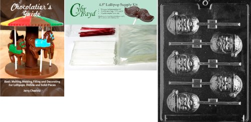 Cybrtrayd Santa Pop Chocolate Mold with Chocolatier's Bundle of 25 Lollipop Sticks, 25 Cello Bags, 25 Red Twist Ties and Chocolatier's Guide