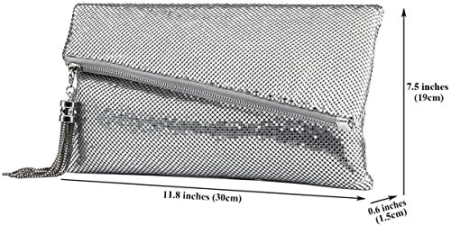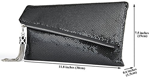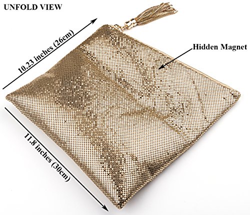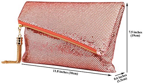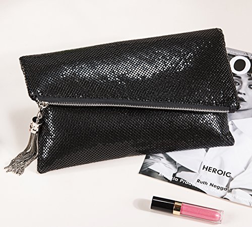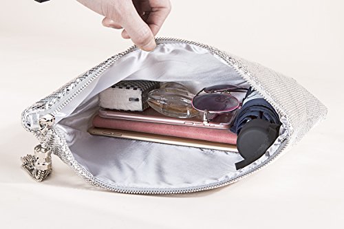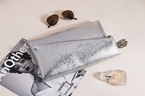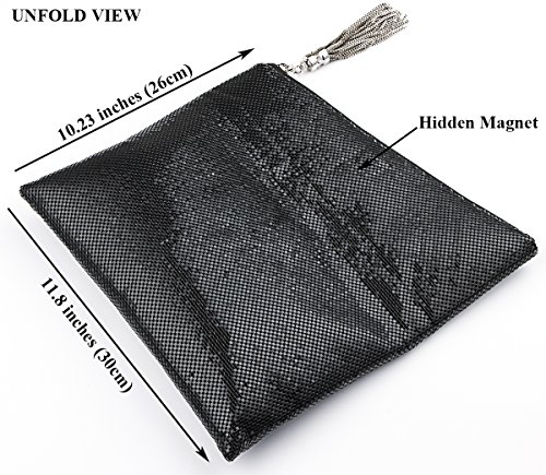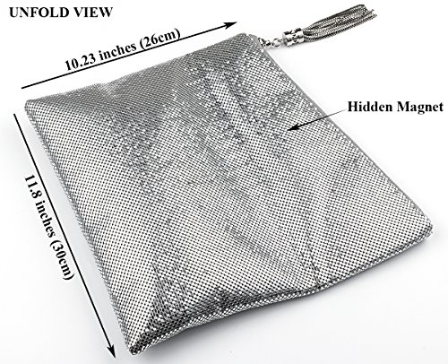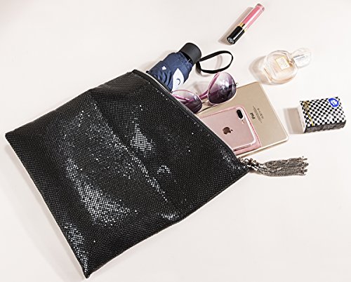 ♥Stylish Design, the deep main compartment folds over to make this a standard clutch. ♥This bag has large room for your essentials, and the different compartments will help to keep you organized. ♥Metal Mesh Material