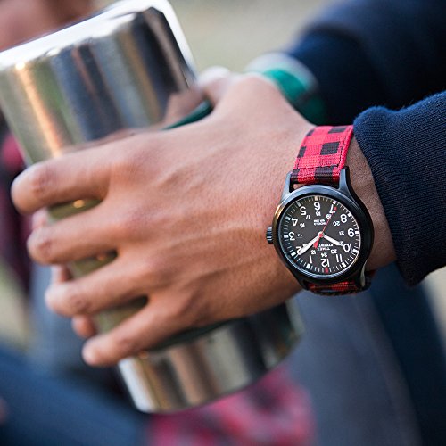 -. Feature : This sporty and casual watch is a perfect gift for New Year, birthday,valentine's day and so on. -The watch has a function: 24 hour display, Indiglo Light / High quality 21 cm length and 20 mm width Blanck and Red Nylon strap with a Buckle / Case diameter: 40 mm,Case thickness: 10 mm, Case colour: Black and Dial colour: Black / Water resistant: 5 bars-Weight: 60 g / The watch is delivered in an elegant gift box and has a warranty of 2 years
