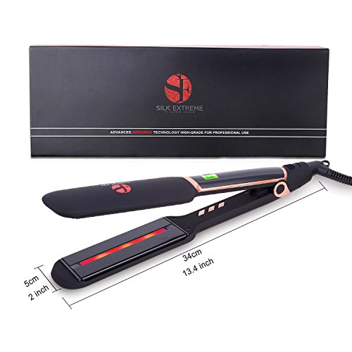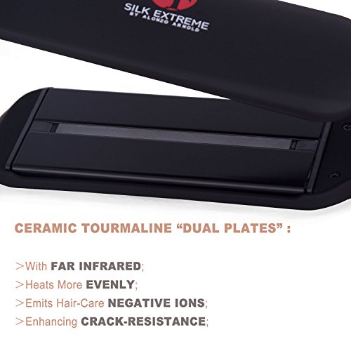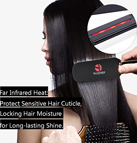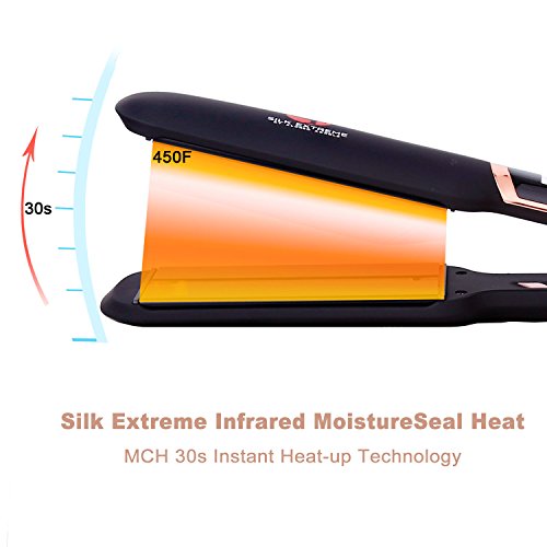 INFRARED SHINE: Silk Infrared Hair Straightener features advanced Infrared technology and 2 inch wide ceramic tourmaline plates on top of MCH instant heater, evenly heats hair from the inside-out, while far infrared ray fully penetrates the cuticle, sealing in hair moisture and adding shine to the original look