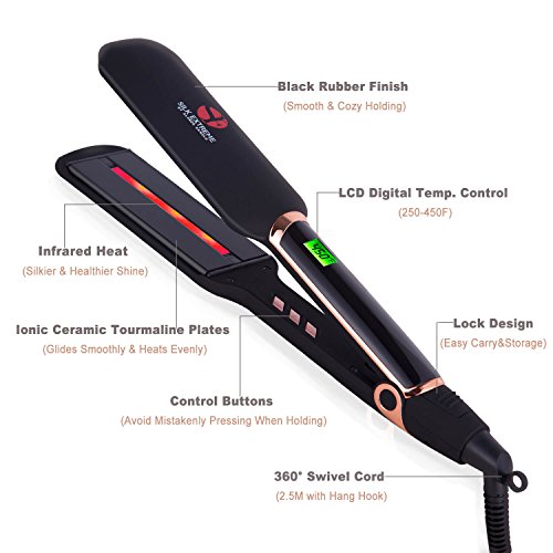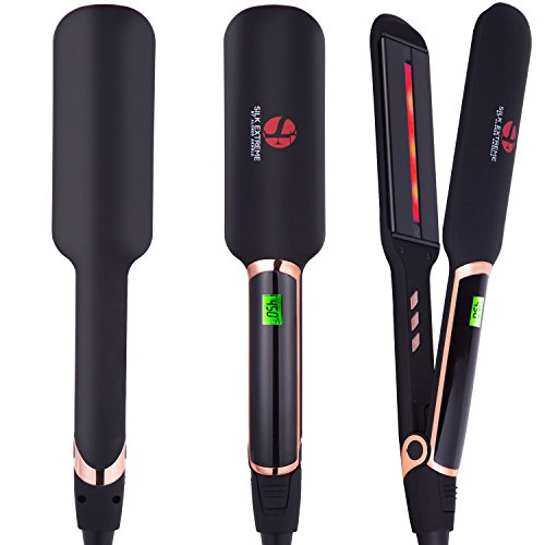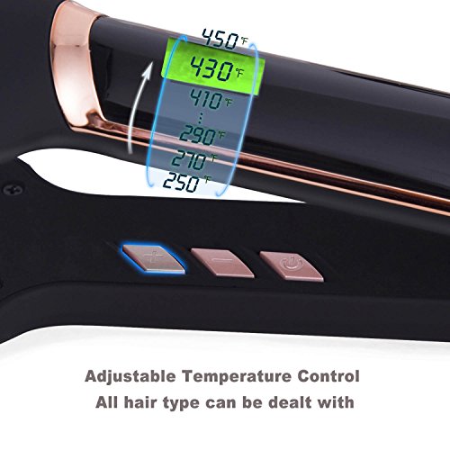 DESIGNED for professional and home use, with LCD display on top, the iron precisely indicates temperature from 250-450℉ in styling, works well for taming thin, fine, fragile to thick, curly, coarse hair. The extra width greatly cuts your styling time by half.