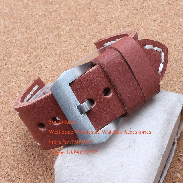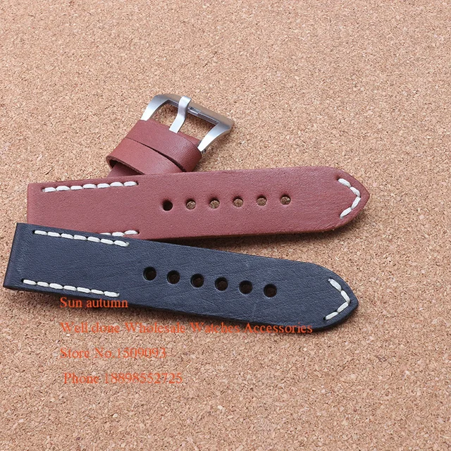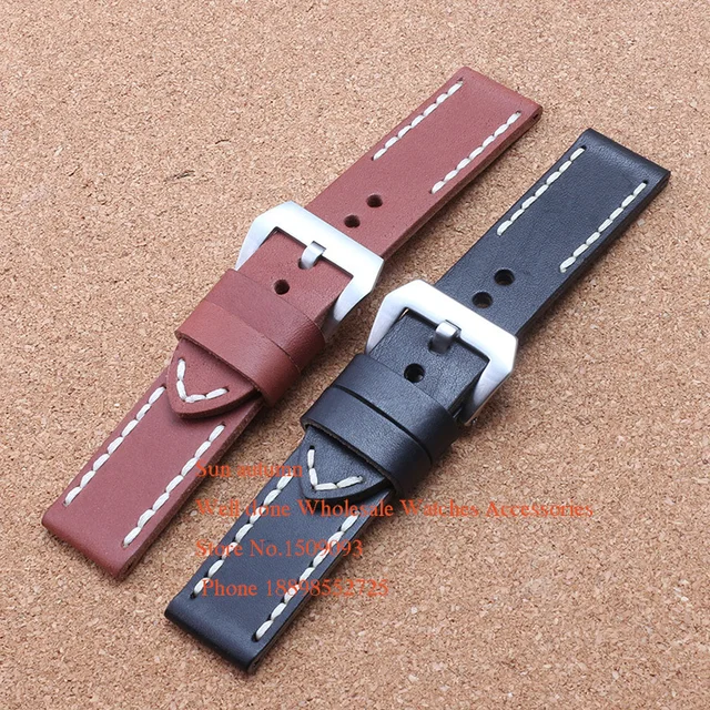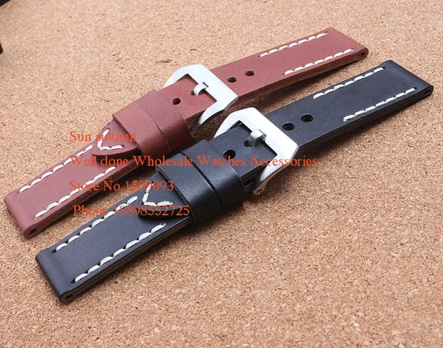 | [해외] 소 가죽 시계 밴드 스트랩 24 미리메터 빈티지 스타일 블랙 브라운 손목 시계 브랜드 시계 남성 시계 액세서리 팔찌 두꺼운 |