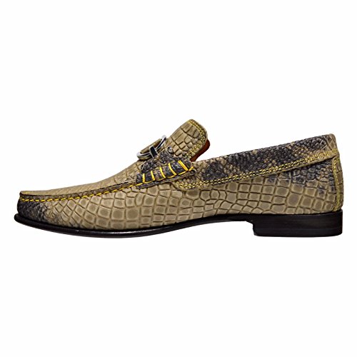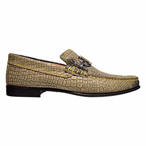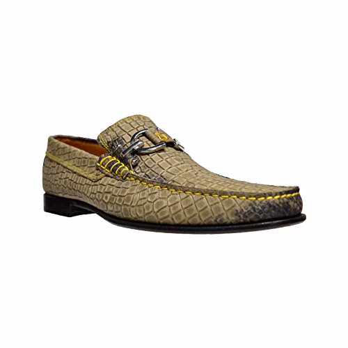 Product DescriptionMade in italy. dacio loafer with crocco print distressed nubuc upper. nickel hardware. fully leather lined. outsole is brushed leather with rubber plug insert. polished, stacked leather heel.0