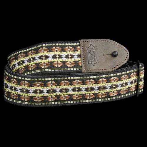Studio : Levy's Leathers Guitar Strap Publisher : Levy's Leathers Guitar Strap Product Description 2" jacquard weave guitar strap with vintage Hootenanny design, soft leather backing, relic'd leather ends, and antique brass tri-glide adjustment. Pictured in . Also available in Hootenanny patterns below. Adjustable to 56" 0