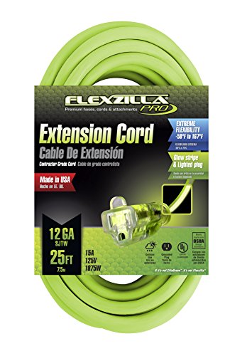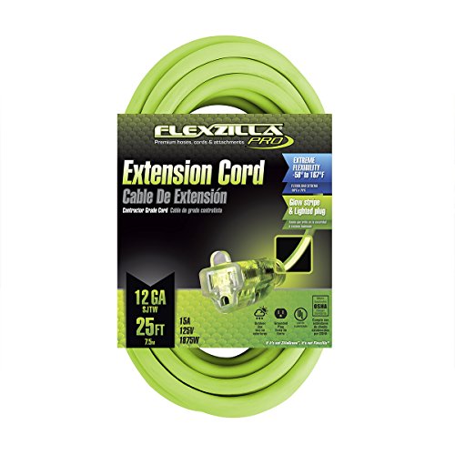 Flexzilla Pro Extension Cord, 12/3 AWG SJTW, 25 ft., Lighted Plug, Indoor/Outdoor, ZillaGreen - 721-123025FZL5F