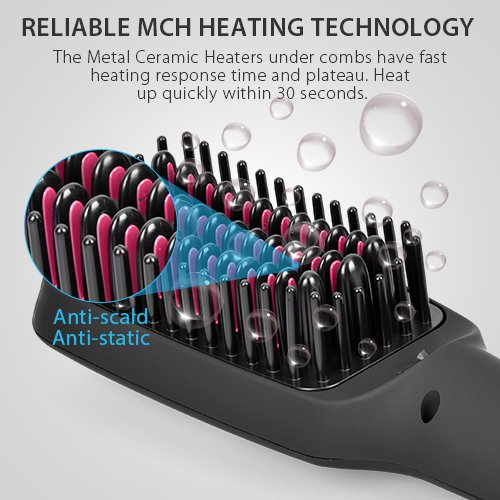- RELIABLE MCH HEATING TECHNOLOGY - Metal Ceramic Heater(MCH) heating elements are small ceramic stones with self-limiting temperature function. MCH stones have fast heating response time and plateau once the pre-determined temperature is reached. MCH is the new heating standard for hair appliance, heating quickly within 30 seconds to save energy and make the straightener brush more durable.