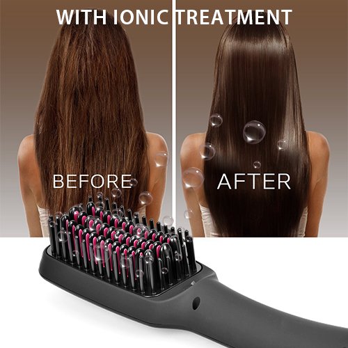 - ANTI-SCALD COMB TEETH FOR GENTLE USE - If you have a sensitive scalp, this ionic hair straightening brush is designed with anti-scald teeth that never hurt or irritate you while you smooth out your strands. It also uses anion care (aka, it emits negative ions) that keep your hair hydrated and moisturized as it straightens and detangles, instead of drying out your hair. Less moisture loss, flyaways and static compared to other models on the market.
