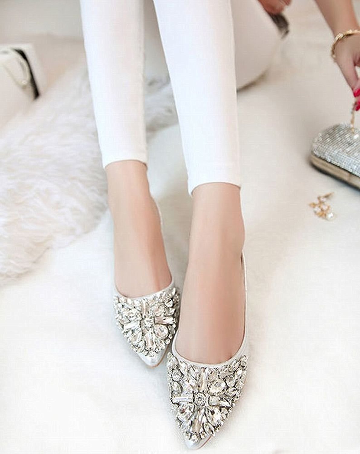 (Beumens) Beaumens Petanko Flat Pumps Shoes Low Heels Feminine Casual Women's Shoes with Stone Bijou