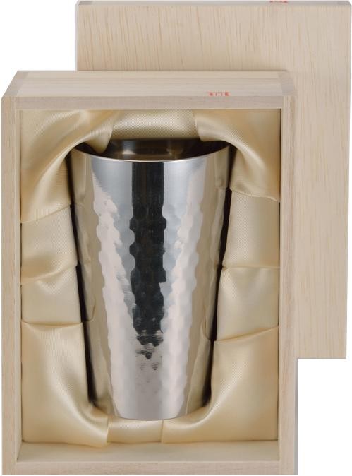 二重チタンカップは、全体が薄いチタンの二重構造になっています。内部は中空になっております。手の熱を飲み物に伝えないため、氷が溶けにくく、熱い飲み物も冷めにくい構造です。氷を入れても結露が起きにくく、飲み物の味を変えないという、極めて高い実用性を備えています。 |