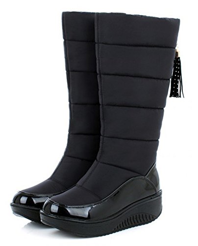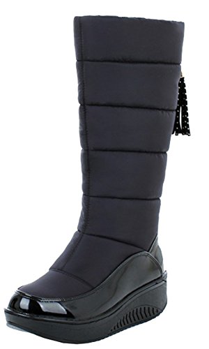 Binding : Apparel Product Description Winter is coming! Do you want a pair of boots both of fashion and warm? This pair of snow boots is a perfect choice. This lovely shoes features pull on closure and round toe. With their tassel in the upper, you will look more elegant and cute. The faux fur lined will warm you all winter. The sole is made of good rubber. You will feel comfy in their soft bottom. The heels measure 1.6 inches. You will feel comfortable in their low heels. Its platform is about 1 inch. So you will not feel tired even walking all day long. They are of high quality and durable. Just pick them to show your beauty. 0