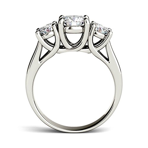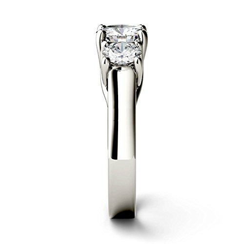 -. Binding : Jewelry -. Brand : Charles & Colvard -. Department : womens -. Feature : This charming Forever OneTM moissanite ring features a trio of glistening round brilliant cut gemstones set in a linear design atop a brightly polished shank. The primary gemstone is 6.5mm and the two accent stones are 5.0mm. / Beautifully crafted in rhodium plated 14K white gold and secured in a four prong setting. / The primary 6.5 gemstone has a Diamond Equivalent Weight (DEW) of 1.00ct (Actual Weight 0.88ct). The total Diamond Equivalent Weight (DEW) for all three stones is 2.00cttw (Actual Weight 1.70cttw). / Charles & Colvard Forever OneTM D-E-F is our much desired colorless grade of moissanite formed from uniquely structured silicon carbide that produces the most brilliant gemstones on the market. Color grades are based on the Gemological Institute of America's diamond color grading scale. / Moissanite created by Charles & Colvard is among the hardest minerals on the planet, more durable than sapphire, ruby, or emerald and has more brilliance than a diamond. It scores 9.25 on the Mohs scale for hardness. -. Label : Charles & Colvard -. Manufacturer : Charles & Colvard -. Model : P492436 -. MPN : P492436 -. PackageQuantity : 1 -. PartNumber : P492436 -. ProductGroup : Jewelry -. ProductTypeName : FINERING -. Publisher : Charles & Colvard -. Studio : Charles & Colvard -. Title : Forever One Round 6.5mm Three Stone Moissanite Ring, 2.00cttw DEW (D-E-F) By Charles & Colvard