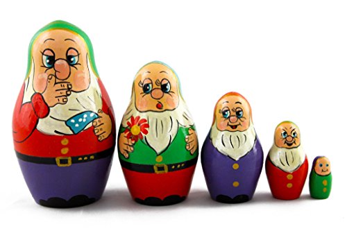 -. Title : Matryoshka Matreska Babuska Russian Nesting Wooden Doll Dwarves Gnomes Matrioshka 5 Pcs Stacking Hand Painting Beautiful Nested Great Craft Matriosjka Matrioska Matreshka Matrjoska Matroeska