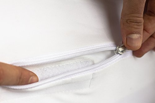 -. Brand : Hygea Natural -. Color : White -. Feature : Protects against bed bugs, dust mites, allergens, and fleas / 100% waterproof material, protects against leaks and spills / Encases the pillow with a secure zipper to ensure protection / Machine washable and dryer safe -. IsAdultProduct : 0 -. Label : Bed Bug 911 -. Manufacturer : Bed Bug 911 -. ProductGroup : Health and Beauty -. ProductTypeName : PERSONAL_CARE_APPLIANCE -. Publisher : Bed Bug 911 -. Studio : Bed Bug 911 -. Title : Bed Bug Waterproof Premium Zippered Pillow Protector | 2 Pack by Hygea Natural