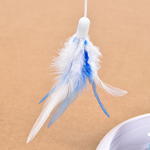 - Color: Blue. - Material: ABS. - Size: Approx. 33.5 x 20.5 x 6 cm / 13.2 x 8.1 x 2.4 inch (L x W x H). - The base is unique and beautiful, and the feather looks cute. -Spinning action stimulates the cat's natural instincts and keeps cats guessing. -This toy can avoid the cat from scratching furniture and floors. - Strengthen the friendship between you and your cat. Package Including 1 x set of Electric Rotate Interactive Cat Feather Toys Teaser Motion Kitten Toys (Blue) 0