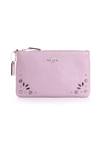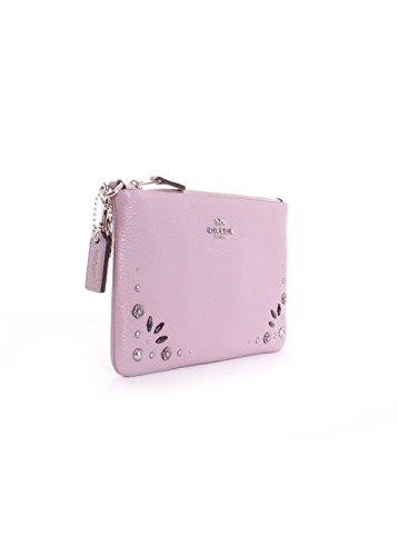 Crafted in polished pebble leather with western-inspired prairie rivets and pearly cabochons, this wallet is perfectly sized for cards, cash and a phone. Wear it on your wrist or clip it inside a larger Coach bag.