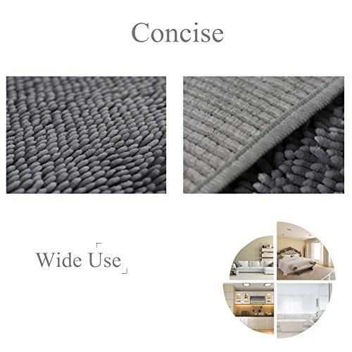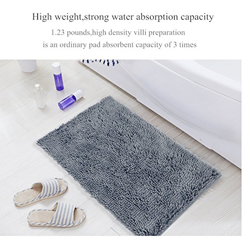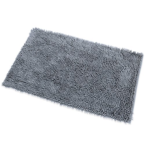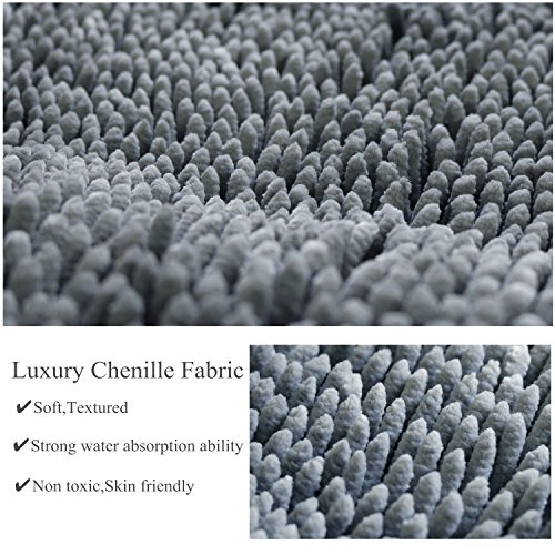 DocBear Microfiber Bath Mat Chenille Luxury Bathroom Rugs Carpet Non Slip Bathroom Mats,Soft & Absorbent Shower Rug,Machine Washable,(Grey 20 x 32 Inches)
