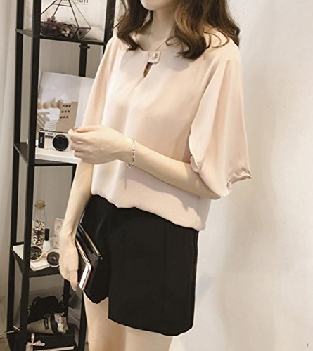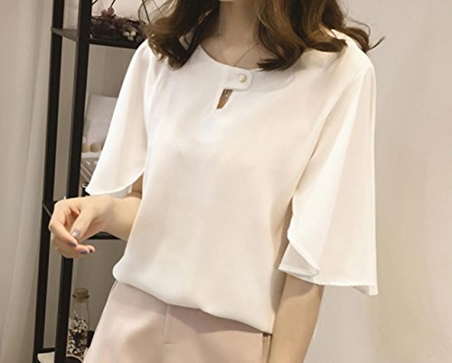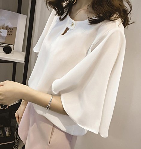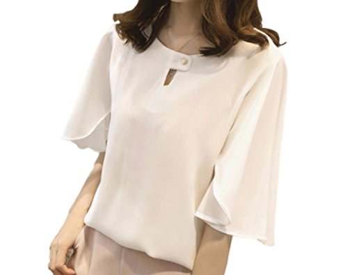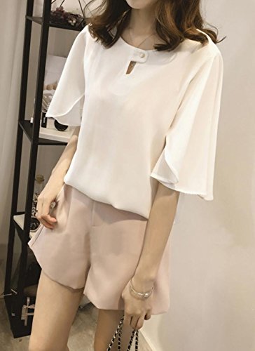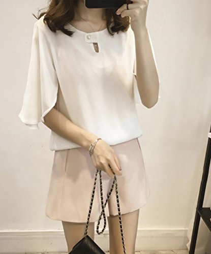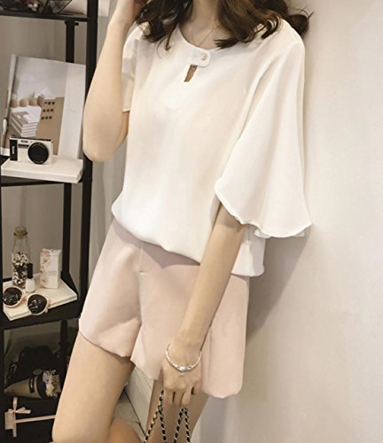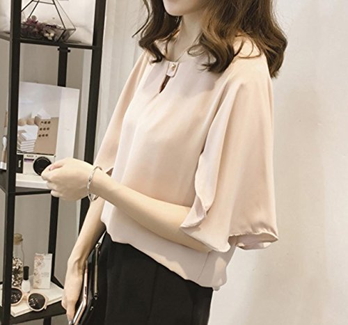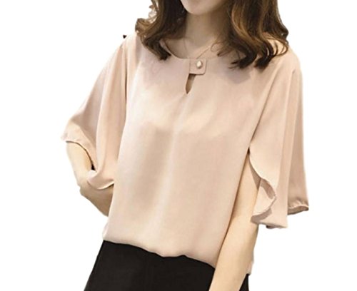 -. Title : (ビコノワール) Beconoir オシャレ かわいい フリル 五分袖 シフォン ラウンド ネック ブラウス トップス レディース