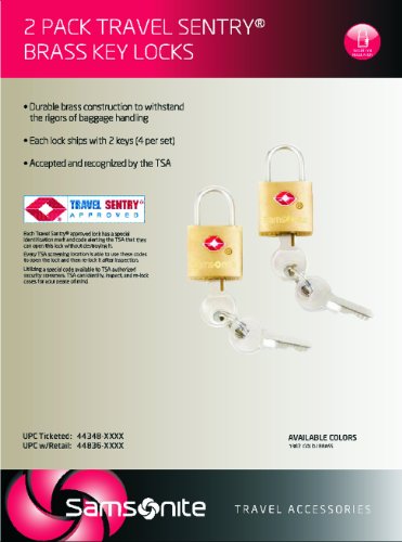 Durable brass construction to withstand the rigors of baggage handling Each lock ships with 2 keys Accepted and recognized by the TSA Item model num : 44348-1367