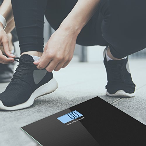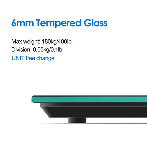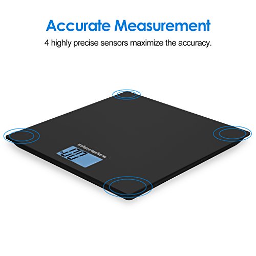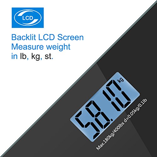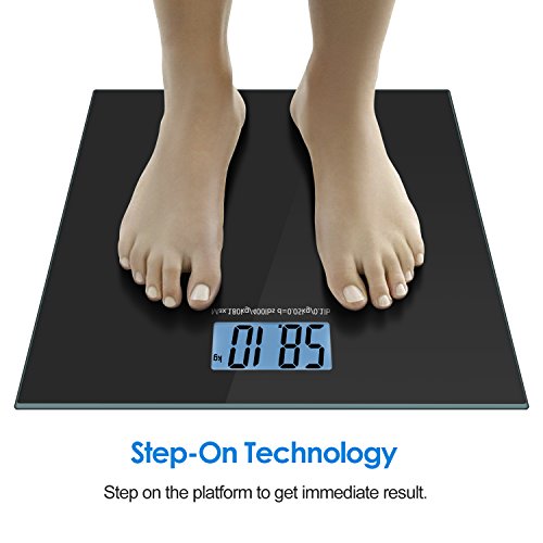 Body Weight Scale, Helect Tempered Glass Digital Bathroom Scale with Step-On Technology 400LB/180KG (Black) - H1010