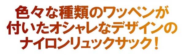 光沢のあるナイロン素材に色々なデザインのワッペンを貼り付けた、シンプルながら