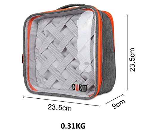 -. Binding : Electronics -. Brand : BUBM -. Feature : Made of durable waterproof Nylon Fabric and PVC / Flexible plastic poly top that allows easy viewing of what you have put inside each, double zippers opens on 3 sides for easy access to interior / Organization system - a rubberized woven elastic object retention system for gadget organization . / Very useful for travelling, well organizer wet clothes, Brush Tools, MP3 players accessories, cameras, power cords cables,cords, batteries, chargers, Fitbit, etc / Good ideal for travel Accessories as organizer case or cosmetic bag, fits neatly into the file cabinet or suitcase / briefcase / backpack. -. Label : BUBM -. Manufacturer : BUBM -. MPN : Yunty-Colorbag -. PackageQuantity : 1 -. PartNumber : Yunty-Colorbag -. ProductGroup : Home Improvement -. ProductTypeName : CE_ACCESSORY -. Publisher : BUBM -. Studio : BUBM -. Title : BUBM Clear Travel Gear Organizer / Electronics Accessories Bag/Cosmetic Bag