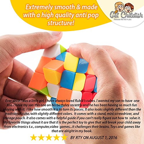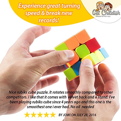 -. Binding : Toy -. Brand : Get Childish -. EAN : 0646437143646 -. Feature : STICKERLESS: No more cheap cubes with annoying stickers that fall off, this rubik cube is made completely stickerless and designed with high quality ABS material for more durability! / QUICK & EASY TURNINGS: Achieve great corner cuttings & brake new speed records!Thanks to it's easiness of turning and high quality anti pop structure design. / EXTREMELY SMOOTH: Unlike other stiff cubes, ours is extremely smooth which helps you solve puzzles quicker with less stress! Adjust it & lubricate it to fit your needs! / HEALTHIER BRAIN: By stimulating your mind with this magic cube you will develop patience,critical thinking skills, increase concentration, problem solving skills and more! / LIFETIME MONEY BACK GUARANTEE: If you are not completely satisfied with your purchase we will send you every single penny of your purchase no questions asked! CLICK the ADD TO CART button today! -. IsAdultProduct : 0 -. Label : Get Childish -. Manufacturer : Get Childish -. ProductGroup : Toy -. ProductTypeName : TOYS_AND_GAMES -. Publisher : Get Childish -. Studio : Get Childish -. Title : Speed Cube - Best 3x3 Rubiks Cube Puzzle - For Beginners & Professionals - Includes FREE Bonuses!- Perfect For Achieving a Fantastic Mental Workout and Enjoying an Amazing Speed Cubing Experience -. UPC : 646437143646