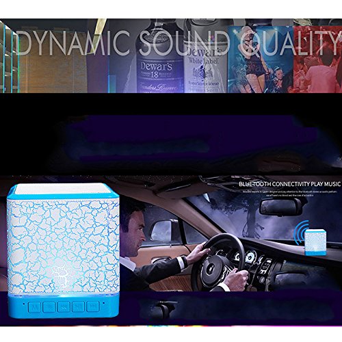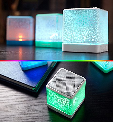 Feature : PERSONALITY,FASHION,AND HUGE STEREO SOUND : Our exceptional sound quality is provided by through a 3W audio driver and passive subwoofer,Enjoy an impressively crystal clear sound quality and robust bass realized. / ELEGANT PORTABLE DESIGN : Our portable Bluetooth speakers have versatile portable design with COLOR LED LAMP 7 color of the LED night light will be changed,Good for bedroom as a night light for kids or music lamp. / Latest Bluetooth 4.0 Technology : Bluetooth-enabled device from up to 33 feet (10 meters) away. Connect the Bluetooth Wireless Speaker to music, games, movies, your TV, smartphones, tablets, and so much more - life is booming. / LONG BATTERY LIFE:Build-in 600mAh hugh capacity battery, 10 hours working time (Affected by Volume / Light Brightness) after fully charging for about 4 hours. Just enjoy the warm light and music,while you are camping, reading or romantic dinner. / CLASSIC APPEARANCE DESIGN: Gorgeous crack light also as a fashionable gift or decoration, Share the young and relaxing lifestyle with the important perso.